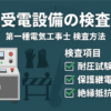 | 竣工検査 | 工事完了後、使用開始前 | 絶縁抵抗測定、接地抵抗測定、保護装置の動作試験等 |