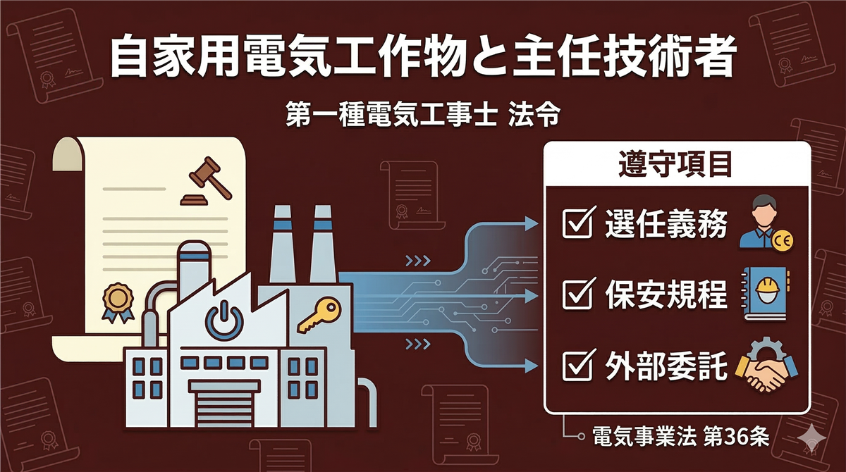 「自家用電気工作物と法令のポイント|第一種電気工事士」の理解度をチェックするミニテストです。