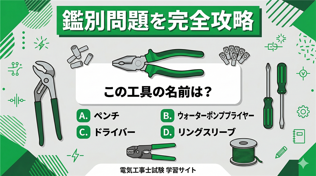 - 「鑑別問題対策|工具・材料・器具の名称と用途を完全網羅」── 写真を見て器具名を答える練習