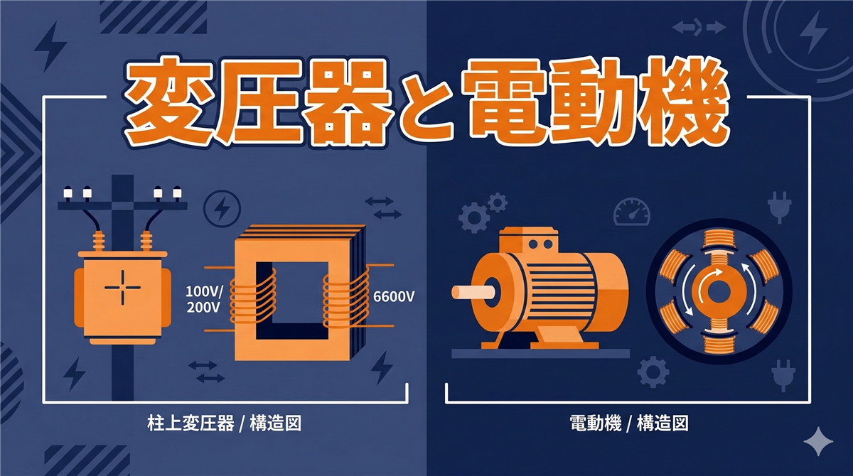 - 「変圧器と電動機の仕組みをわかりやすく解説|第二種電気工事士 電気機器」── 電気機器のもう一つの柱、変圧器とモーターの公式