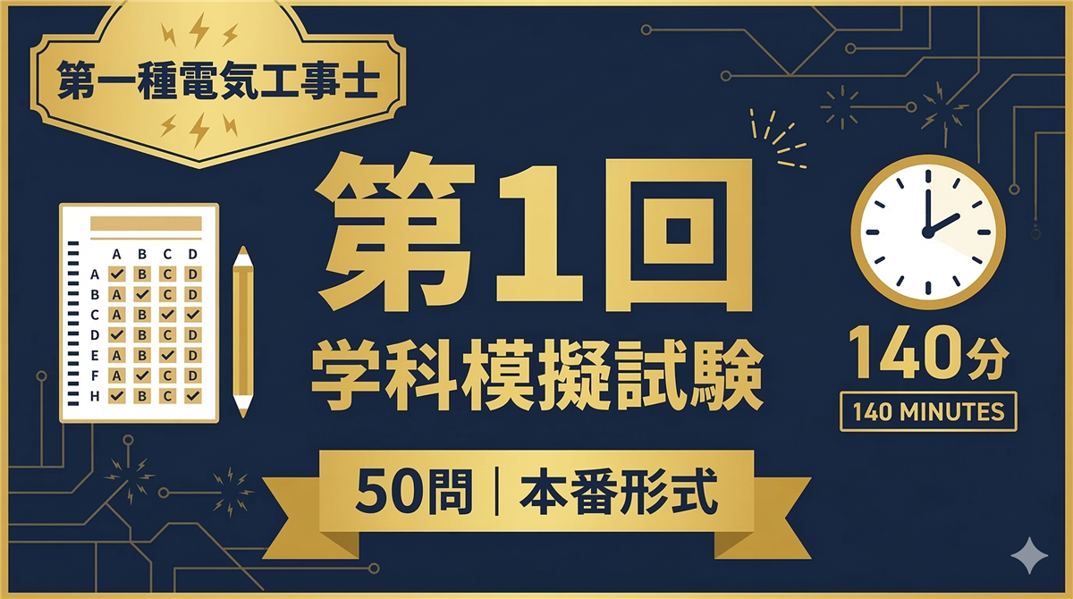 模擬試験の使い方 出題形式 四肢択一(イ・ロ・ハ・ニ) 問題数 50問(一般問題30問+配線図問題20問) 制限時間 140分 合格基準 60%以上(50問中30問以上正解) 最終回です。CB形+非常用発電設備の配線図が出題されます。第1回・第2回の復習を済ませてから挑戦しましょう。 解答用紙を開く → 一般問題(問1〜問30) 問1(電気理論) 三相3線式回路にΔ結線された3つの等しい抵抗R〔Ω〕を、Y結線に変換した場合の各抵抗〔Ω〕は。 イ.R÷3ロ.R÷√3ハ.Rニ.3R 問2(電気理論) 抵抗R〔 ...